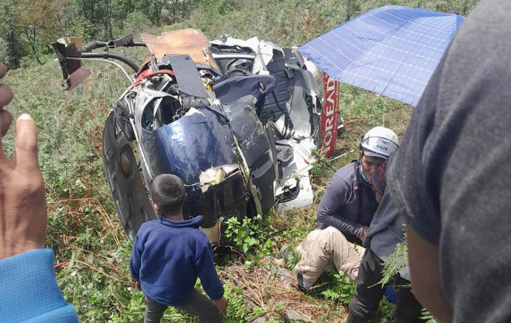 हेलिकोप्टरमा सवार चार जना गम्भीर घाइते हुनुभएको उनले बताए । आज दिउँसो १ः१० बजे भोटखोला गाउँपालिका–४ हटियाको सिक्प्रुङको हम्मरेडाँडामा रुखमा ठोक्किएर हेलिकोप्टर दुर्घटना भएको प्रहरीको भनाइ छ ।