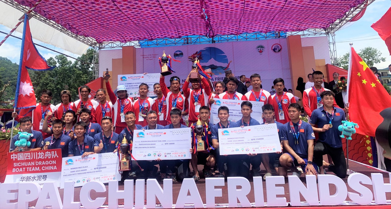 यसैगरी उपविजेता नेपाली टोली नारा ड्रागन बोट टिमले दुवै इभेन्टमा गरी रु सात लाख नगद पुरस्कार पायो । सिचुवानले पाँच सय मिटरको दूरी दुई मिनेट २० सेकेन्डमा पूरा गर्न सफल भयो । यसैगरी दुई सय मिटरको दौड ५३ सेकेन्डमा पार गर्दै दोहोरो उपाधि जित्न सफल भयो । नेपाली टिम नाराले भने पाँच सय मिटरको दूरी दुई मिनेट २३ सेकेन्डमा पूरा गर्न सफल भयो । यसैगरी दुई सय मिटरको दूरी भने ५६ सेकेन्डमा पार गर्दै उपविजेता भएको हो ।