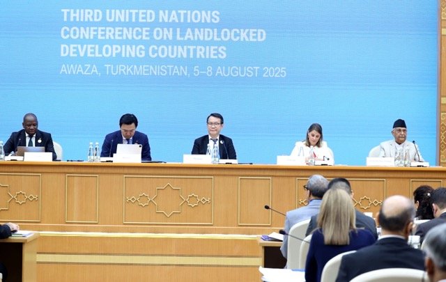 भूपरिवेष्टित विकासशील राष्ट्रहरू (एलएलडिसी)को तेस्रो संयुक्त राष्ट्रसङ्घीय सम्मेलनअन्तर्गत आज ‘व्यापार तथा वाणिज्यको सहजीकरण र क्षेत्रीय सहकार्य’सम्बन्धी ‘राउन्ड टेबल’को सहअध्यक्षता गर्दै उहाँले निष्पक्ष व्यापार सर्तहरू र पारवहन व्यवस्थाका लागि सामूहिक दबाब दिनुपर्नेमा जोड दिनुभयो ।