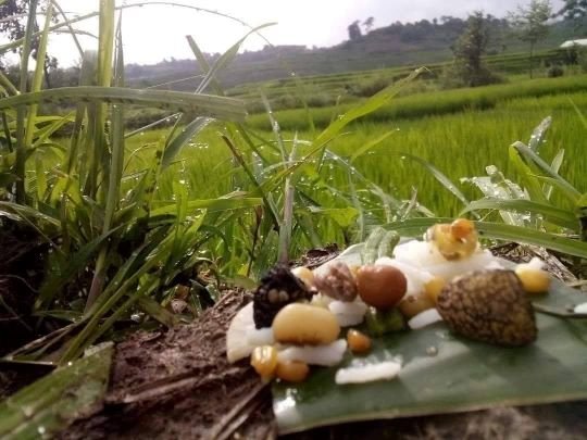 भक्तपुर, गोलाकार पारेर काटिएका मूलाका चानालाई सिन्काले घोचेर डल्लो र अली लाम्चो बनाइएको भातमा अड्याइएको छ । छरिता रोटीसँगै क्वाँटीलगायत विभिन्न तरकारी र खानेकुरा एउटा ठूलो पातमाथि राखिएका छन् । त्यही पातलाई नाङ्लो वा किस्तीमाथि राखेर रक्षाबन्धन धागो र सिन्दुरसमेत त्यसमै राखेर छेवैमा धुवाइरहेको सुगन्धित धूप बालेर यहाँका किसान खेतमा पुगेका छन् ।