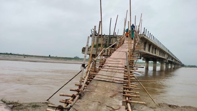 सिरहा, २६ साउन : सिरहा र धनुषा जिल्लालाई जोड्ने कमला नदीको पक्की पुल १४ वर्षदेखि अधुरै छ । विसं २०६८ मा तीन वर्षमै सम्पन्न गर्ने लक्ष्यसहित सुरु गरिएको चार सय ६९ मिटर लामो पुल अहिलेसम्म निर्माण सम्पन्न नहँुदा स्थानीयवासी बर्सेनि सास्ती भोग्न बाध्य छन् । पुल नबन्दा स्थानीयले अस्थायी रूपमा बनाइएको बाँस वा काठको पुलमार्फत जोखिमपूर्ण यात्रा गर्नुपर्ने अवस्था छ । यही साउनको तेस्रो हप्तामा आएको बाढीले बाँसको अस्थायी पुल बगाएपछि आवतजावत ठप्प भएको थियो । हाल पुनः काठको संरचना बनाएर आवतजावत केही सहज बनाइएको भए पनि जोखिम यथावत् छ ।