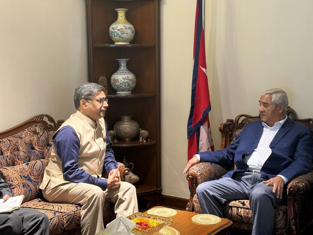 काठमाडौँ, १ भदौः नेपाली कांग्रेसका सभापति एवं पूर्वप्रधानमन्त्री शेरबहादुर देउवासँग भारतीय विदेश सचिव विक्रम मिस्रीले शिष्टाचार भेटवार्ता गर्नुभएको छ ।