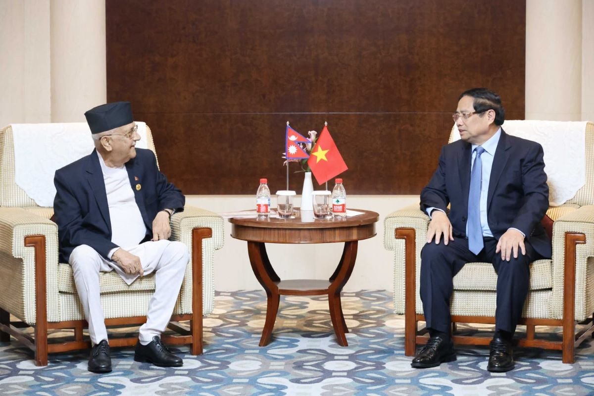 थियानजिन (चीन) । प्रधानमन्त्री केपी शर्मा ओली र समाजवादी गणतन्त्र भियतनामका प्रधानमन्त्री फाम मिन चिङबीच चीनको थियानजिनमा दुईपक्षीय भेटवार्ता भएको छ ।