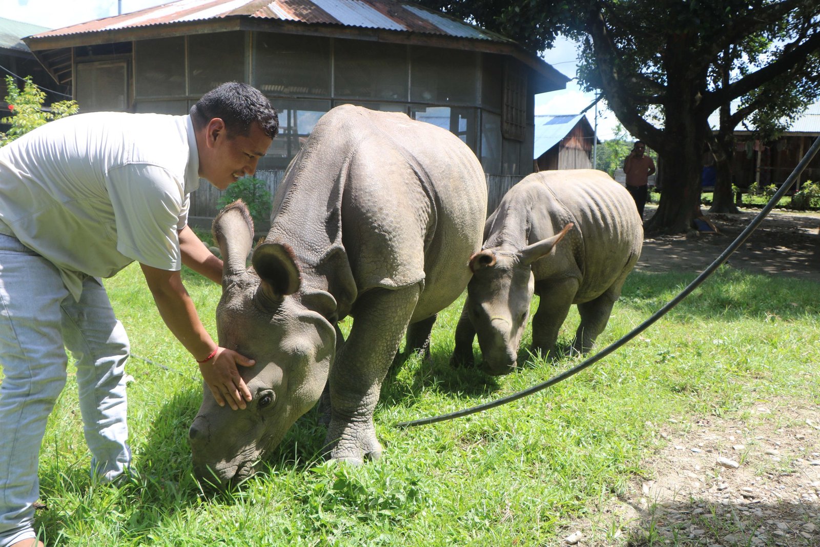 रामलाई उद्धार गर्दा नजिकै एउटा माउ गैँडा मात्र देखिएको थियो, तर त्यसलाई रामकै माउ भन्ने पुष्टि गर्न नसकिएको उनले बताए। “आमाले बच्चा स्वीकार गरिन् कि गरेनन् वा त्यो बच्चा उसको हो कि होइन भन्ने पक्का भएन । घाइतेजस्तो पनि देखिएको थिएन । हामीले हात्तीको सहायताले बच्चालाई आमासँग मिलाउने प्रयास गर्दा माउ गैँडा भाग्यो । त्यसपछि रामलाई यहाँ ल्याएर हेर्दा देब्रे खुट्टा टुटेको पाइयो, बाघले टोकेर छाडेको रहेछ । अनि उपचार र पालन–पोषण गरिएको हो, ” उनले भने।