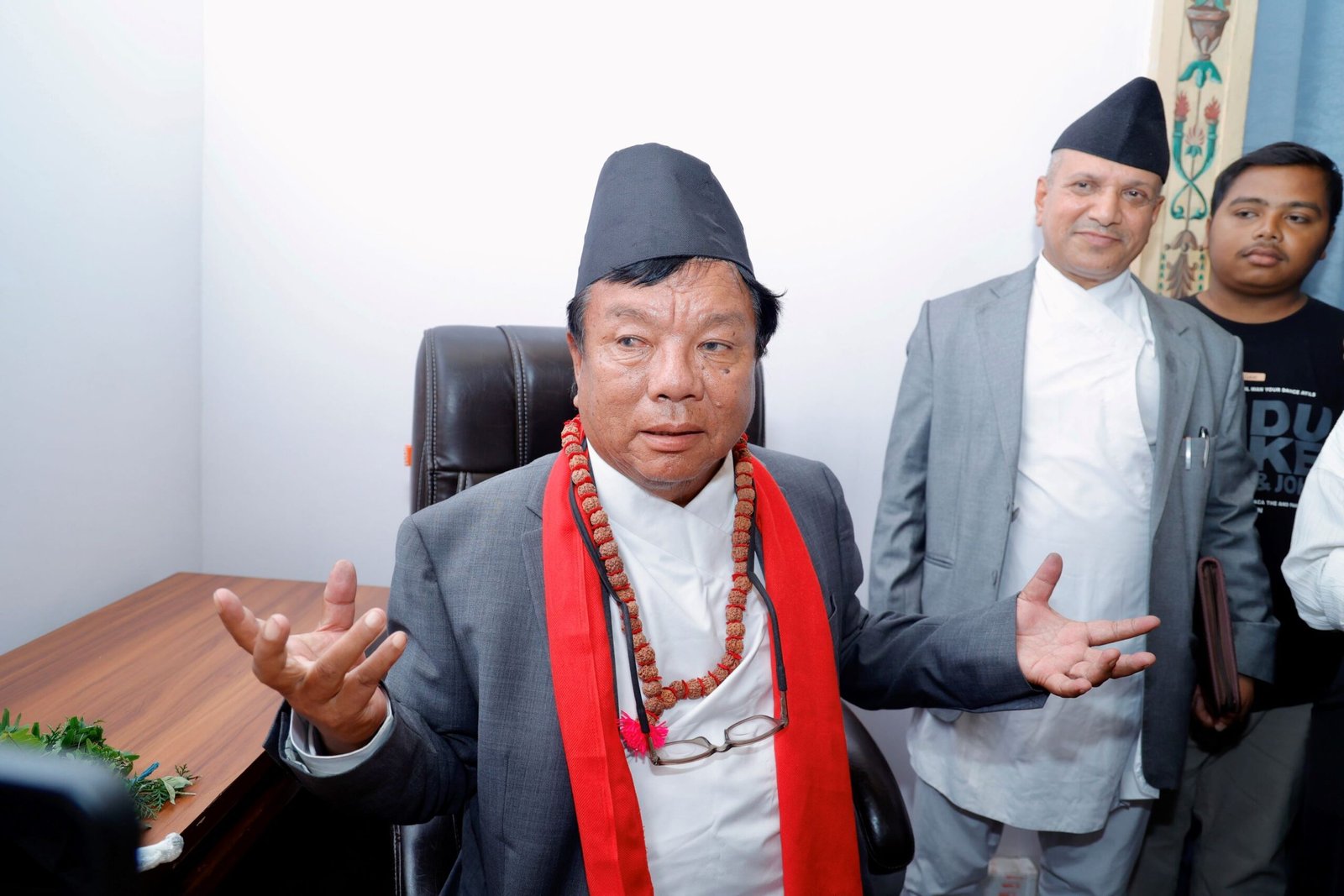 काठमाडौँ, ६ असोज: नवनियुक्त शिक्षा, विज्ञान तथा प्रविधिमन्त्री महावीर पुन कार्यभार सम्हाल्न केशरमहलस्थित मन्त्रालय आउने तयारी हुँदा कर्मचारीमा उहाँलाई कसरी स्वागत गर्ने भन्ने अन्योल देखिन्थ्यो । मन्त्री पुनले राष्ट्रपति भवनमा सपथ लिनुअघि आफूलाई खादा लिएर बधाई दिन नआउन र मन्त्री नभन्न सामाजिक सञ्जालमार्फत अपिल गरेकाले खादा, माला र फूलबाट स्वागत गर्न मन्त्रालयका कर्मचारीहरू हच्किएका थिए । तथापि, फूलका केही गुच्छा र एउटा रुद्राक्षको माला लिएर कर्मचारीहरू स्वागतका लागि मन्त्रालय परिसरमा उभिएका थिए ।