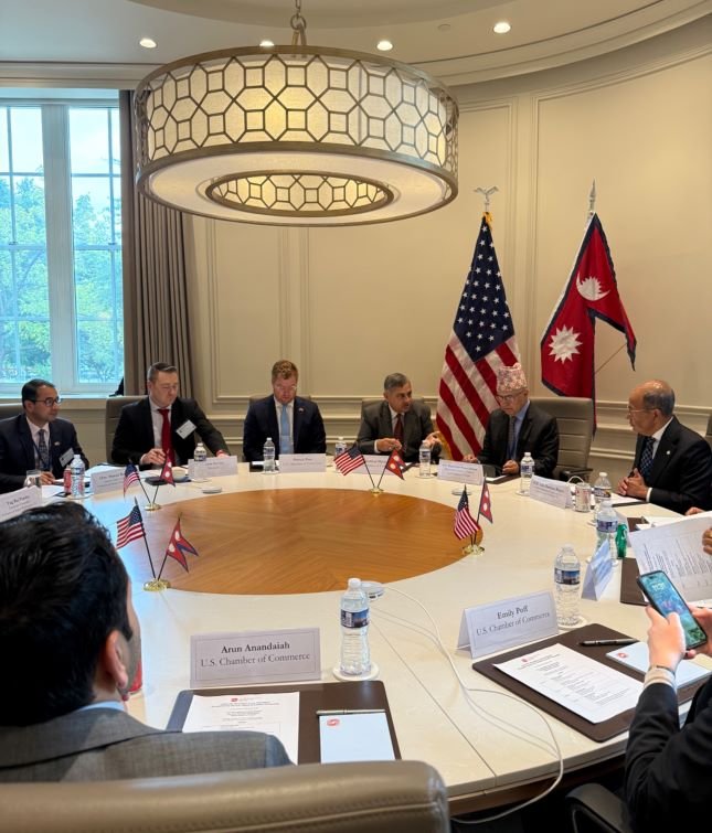 वाशिङटन डिसी (अमेरिका) २८ असोज : विश्व बैंक तथा अन्तरराष्ट्रिय मुद्रा कोषको वार्षिक बैठकमा भाग लिन अमेरिका आउनुभएका अर्थमन्त्री रामेश्वरप्रसाद खनालले अमेरिका चेम्बर अफ कमर्सले आयोजना गरेको बिजनेस डायलगलाई सम्बोधन गर्नुभएको छ ।