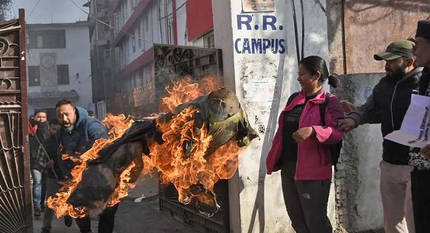 शिक्षामन्त्रीको राजीनामा माग्दै पुत्ला दहन