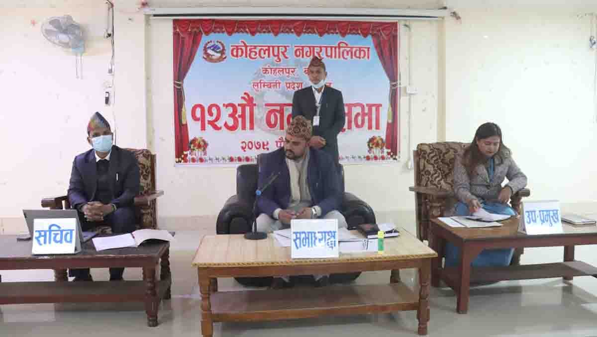 नेपालगञ्ज । बाँकेको कोहलपुर नगरपालिकाको १२औँ नगरसभाले दुई वटा विधेयकसहित सार्वजनिक महत्वका झण्डै एक दर्जन प्रस्ताव आज स्वीकृत गरेको छ ।