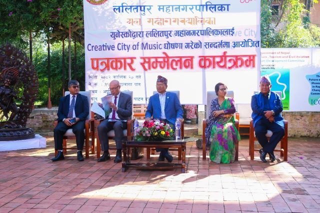 संयुक्त राष्ट्रसङ्घीय शैक्षिक, वैज्ञानिक तथा संस्कृतिक सङ्गठन (युनेस्को)ले ललितपुर महानगरपालिकालाई ‘सङ्गीतको सिर्जनात्मक सहर’ घोषणा गरेको सन्दर्भमा ललितपुर महानगरपालिकाले पाटन सङ्ग्रहालयमा आज आयोजना गरेको पत्रकार सम्मेलनमा महानगर प्रमुख चिरीबाबु महर्जनले सङ्गीतको क्षेत्रमा आफ्ना क्रियाकलापलाई अघि बढाउन राष्ट्रिय सङ्गीत दिवस घोषणालगायत आगामी चार वर्षका निमित्त विभिन्न कार्ययोजना सार्वजनिक गर्नुभएको हो ।