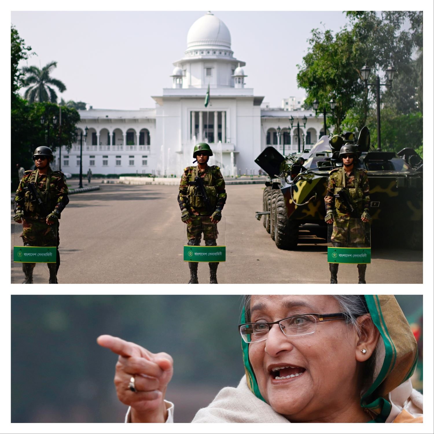 बङ्गलादेश टेलिभिजनले मुख्य न्यायाधीश गुलाम मुर्तजाको अध्यक्षतामा रहेको तीन सदस्यीय बेन्चबाट फैसला प्रत्यक्ष प्रसारण गरेको थियो । बेन्चका अन्य दुई सदस्यमा न्यायाधीश मोहम्मद सोफिउल आलम महमुद र न्यायाधीश मोहम्मद मोहितुल हक इनाम चौधरी रहनुभएको थियो ।
