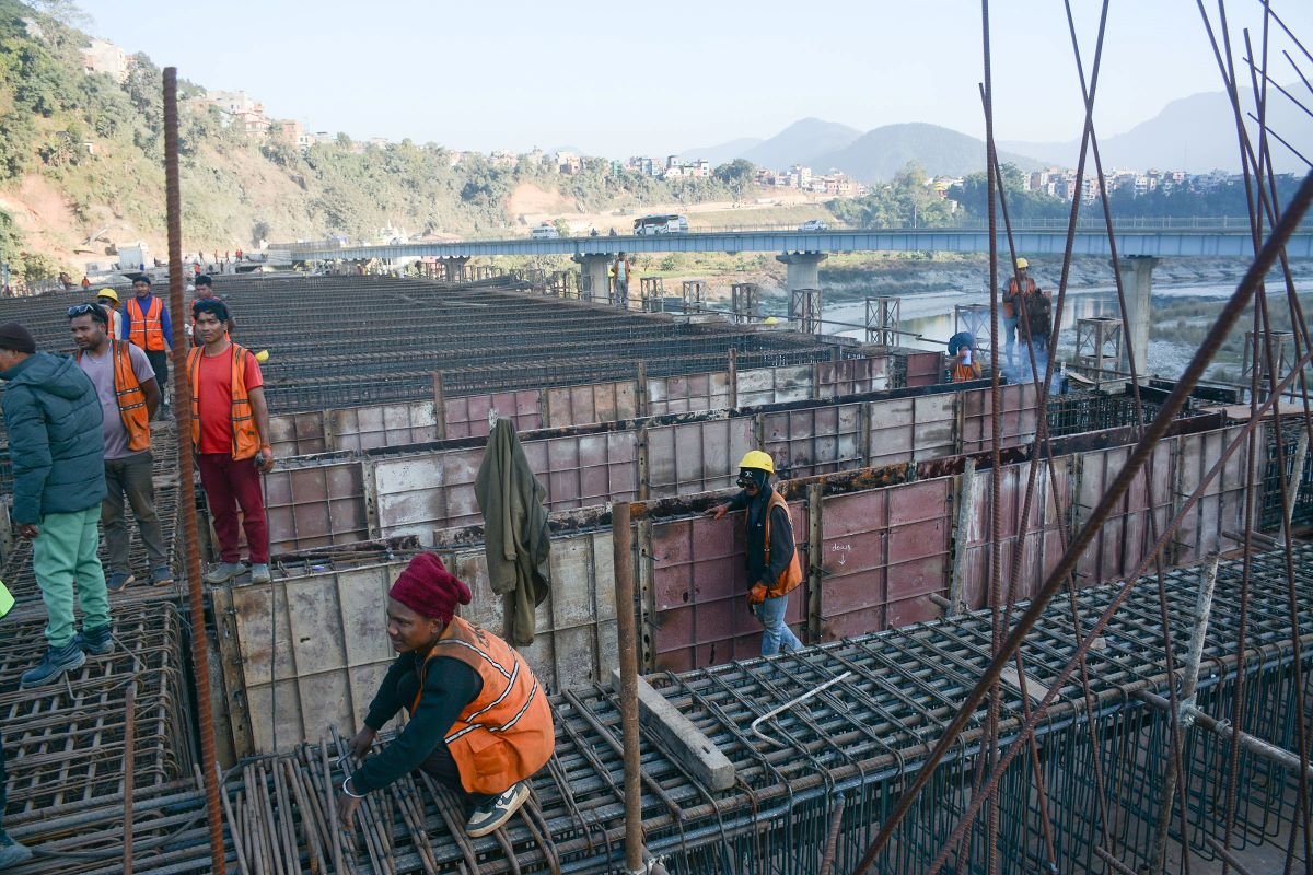 छवटा स्पानमध्ये दुईदुई स्पानको काम सकिएको र बीचको दुईवटा स्पान ६३ मिटरको काम भइरहेको उहाँले जानकारी दिनुभयो । पुलको दायाँबायाँ पाँच सय मिटर पहुँच सडक निर्माण गर्न बाँकी रहेको उहाँले उल्लेख गर्नुभयो । उहाँले भन्नुभयो, “बायाँतर्फ व्यक्तिका घर परेकाले मुआब्जा दिनुपर्ने र दायाँतर्फ सडक डिभिजन कार्यालयको भवन रहेकाले भवन भत्काएर पहुँच सडक निर्माण गर्नुपर्ने अवस्था छ ।”