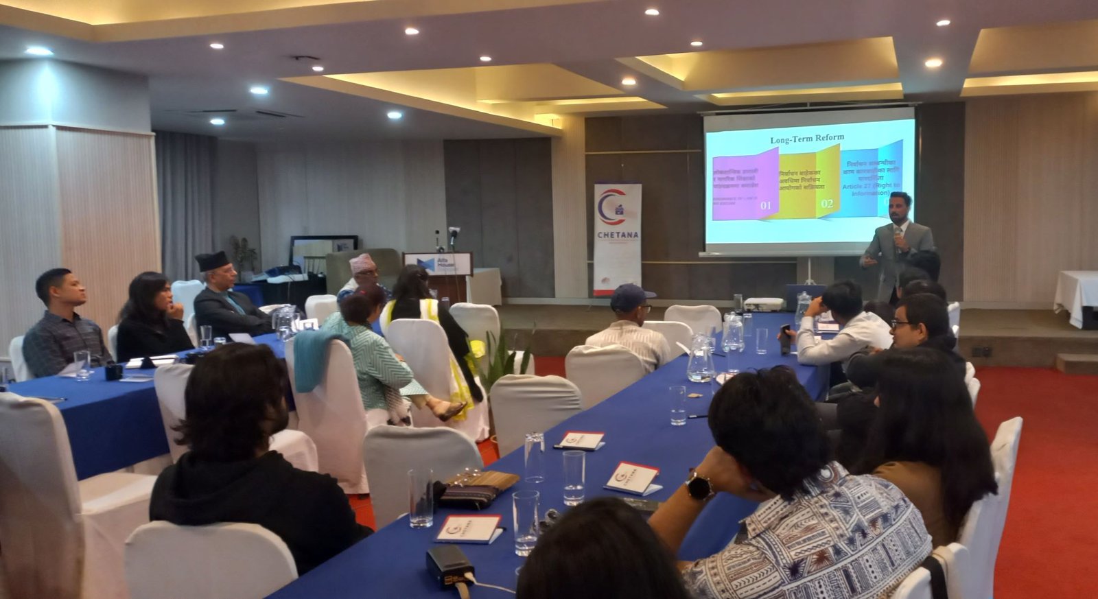 नेपालको निर्वाचनबारे कार्यपत्र प्रस्तुत गर्दै अधिवक्ता सागर घिमिरे निर्वाचनलाई थप स्वच्छ, स्वतन्त्र र विश्वासिलो तुल्याउन यससम्बन्धी मापदण्ड, कार्यविधि, नीति, ऐन, नियमको परिमार्जनदेखि संविधान संशोधनको आवश्यकतासमेत रहेको बताउनुभयो ।