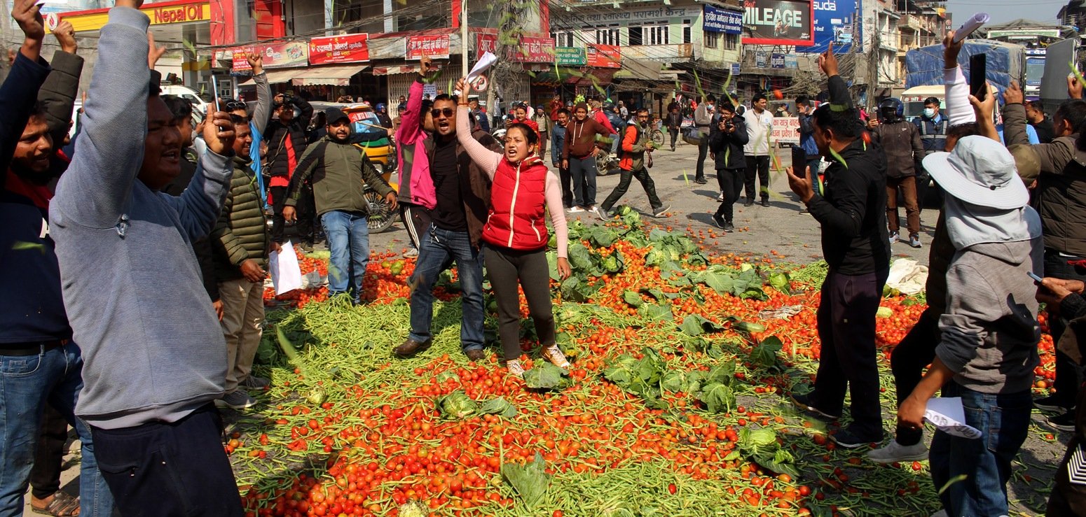 नारायणघाटको पुल्चोकमा तरकारी फालेर उनीहरूले सरकारको ध्यानाकर्षण गराएका हुन् । बारीमै कुहिने अवस्थामा पुग्दा पनि बजारीकरणको लागि सरकारले कुनै पहल नगरेको उनीहरूको आरोप छ । चितवनसहित देशैभर नेपाली किसानले उत्पादन गरेका तरकारी नबिक्दा भारतबाट भने सहज रूपमा तरकारी नेपाल भित्रिएको किसान संघर्ष समितिका संयोजक लेखनाथ भुसालले आक्रोश पोखे ।