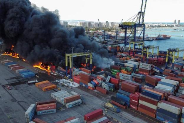 घटनास्थलका तस्बिरहरूले बन्दरगाहमाथि कालो धुवाँको मुस्लो र धेरै कन्टेनरमा आगो लागेको देखाएको छ । बीबीसीका क्वेन्टिन सोमरभिलले बन्दरगाह वरपरको हावामा ‘अझै पनि कालो धुवाँ र पेट्रोलको गन्ध’ रहेको बताए ।