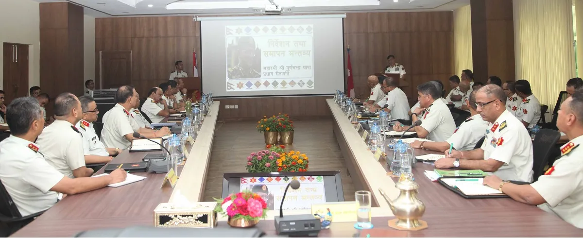 नेपाली सेनाको भिजन–२०३० कार्यान्वयनको अवस्था, सञ्चालित तालिमको प्रभावकारिता, पृतना पुनःस्थापना भएपश्चात् कमान्ड नियन्त्रण र समन्वयको प्रभावकारिताको समीक्षा भएको सैनिक जनसम्र्पक तथा सूचना निर्देशनालयले जनाएको छ ।