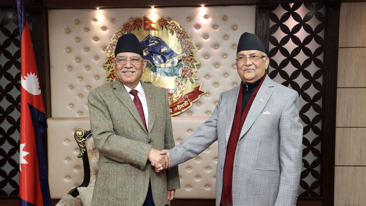 प्रधानमन्त्री प्रचण्ड र एमाले अध्यक्ष ओलीबीच बालुवाटारमा भेटवार्ता, राष्ट्रपति चुनावबारे छलफल