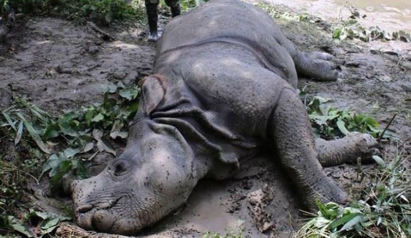 चितवन राष्ट्रिय निकुञ्जमा वयस्क भाले गैँडा मृत फेला