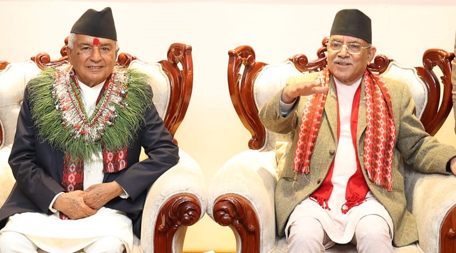 राष्ट्रपति रामचन्द्र पौडेल र प्रधानमन्त्री पुष्पकमल दाहाल ‘प्रचण्ड’बीच भेटवार्ता भएको छ। मन्त्रिपरिषद्को विस्तार गर्न लागेका प्रधानमन्त्री दाहाल आज बिहान राष्ट्रपति कार्यालय शीतलनिवास पुगेर राष्ट्रपति पौडेलसँग भेटवार्ता गरेका हुन्।