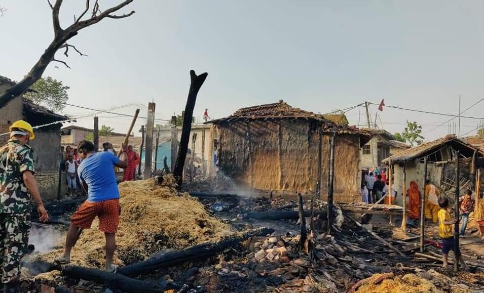 काठमाडौं । रौतहट माधवनारायण नगरपालिका वडा नं. ४ विसुनपुर्वा मानपुर टोलमा आइतबार भएको आगलागीमा कम्तिमा २१ वटा घर जलेर नष्ट भएका छन् । आइतबार दिउँसो करिब साढे २ बजेदेखि मा स्थानीय जिउत मुखियाको घरबाट आगलागी सुरु भएको हो ।