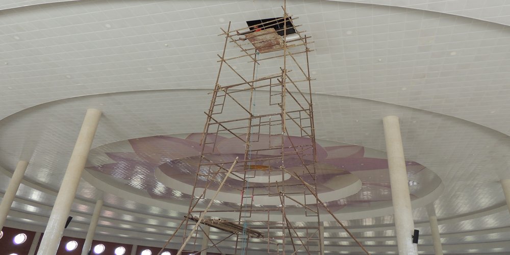 चैत १७ गते वर्षा भएपछि अन्तर्राष्ट्रिय सभाहल तथा ध्यान केन्द्रको छतका विभिन्न ठाउँबाट पानी चुहिएको थियो । ध्यान केन्द्रको छत कोरियन प्रविधिको इपीएस सेन्डविज प्यानल प्रयोग गरेर छाता आकारमा निर्माण गरिएको छ ।