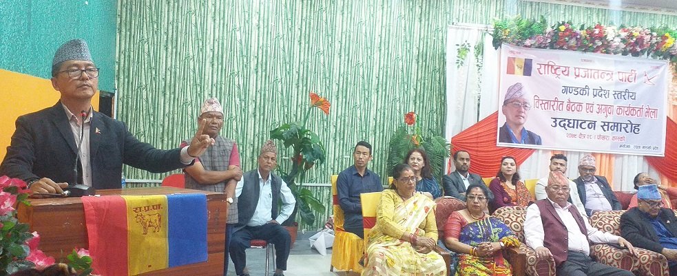 पोखरा, २८ चैत । राष्ट्रिय प्रजातन्त्र पार्टीका अध्यक्ष राजेन्द्र लिङदेनले सुशासन, विकास र जनताको सेवालाई केन्द्र बिन्दुमा राखेर सरकार अगाडि वढ्नु पर्नेमा जोड दिनुभएको छ । राष्ट्रिय प्रजातन्त्र पार्टी गण्डकी प्रदेश स्तरीय विस्तारित बैठक एवं अगुवा कार्यकर्ता भेलालाई मंगलबार पोखरामा सम्बोधन गर्दै अध्यक्ष लिङदेनले भन्नुभयो–‘ हामीले देशकोे व्यवस्था त परिवर्तन गर्‍यौ तर जनताको अवस्था फेर्न सकेका छैनौ ।’