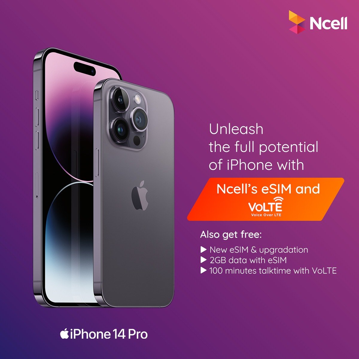 भोल्टेका साथै एनसेलले आफ्नो नेटवर्कमाआईफोन प्रयोगगर्ने ग्राहकहरुकालागि एउटा अर्को पनि योजनाल्याएको छ । यस अन्तर्गत आफ्नो भौतिकसिमलाई ई–सिममाअपग्रेड गर्ने ग्राहकले ७दिनमान्य रहने २ जीबीबोनस डेटा पाउँछन् । बोनस डेटा नेपालमा नै अवस्थितआईफोनको आधिकारिक विक्रेतामार्फत आईफोन खरिद गरेका ग्राहकहरुकालागिलागू हुनेछ ।