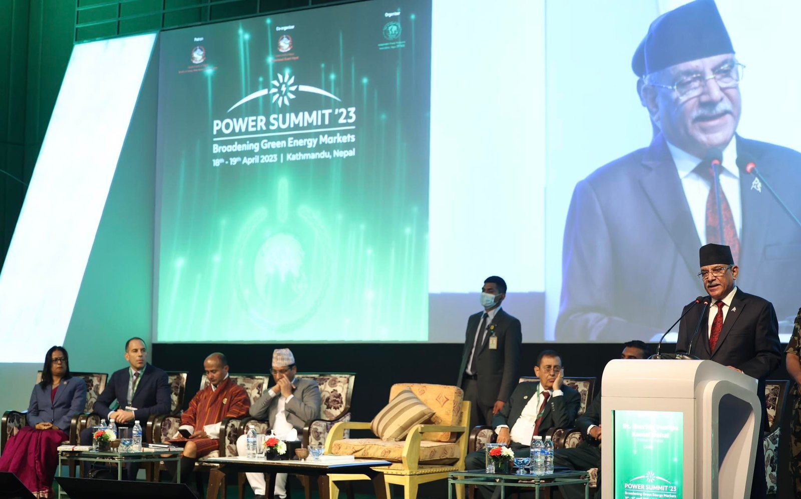यस्तै, जीवास्म इन्धनको आयात घटाउन र जलवायु परिवर्तनको प्रतिकूल प्रभाव कम गर्न विद्युतीय सवारी साधनको प्रयोगलाई बढावा दिनुपर्ने उल्लेख गर्दै प्रधानमन्त्री दाहालले बिजुली खपत बढाउने महत्वपूर्ण क्षेत्र भनेकै यातायात रहेको बताउनुभयो । प्रधानमन्त्री दाहालले सरकार निजी क्षेत्रसँग सहकार्य गरेर अगाडि बढ्न तयार रहेको दोहो¥याउँदै यस समिटमार्फत नेपालको हरित ऊर्जाको बजारलाई फराकिलो बनाउन मद्दत गर्ने स्पष्ट मार्ग निर्देश गर्ने उल्लेख गर्नुभयो । फरक एक प्रसङ्गमा नेपालमा भएका ऐतिहासिक राजनीतिक परिवर्तनपछि नेपाली जनतामा ठूलो आर्थिक विकासको आकाङ्क्षा बढेकाले त्यसलाई सम्बोधन गर्न पनि लगानी विस्तार गर्नुपर्ने उहाँले बताउनुभयो । जैविक विविधताको संरक्षण गर्ने विश्वव्यापी प्रयासमा नेपाल अग्रपङ्क्तिमा रहेको उल्लेख गर्दै प्रधानमन्त्री दाहालले सन् २०४५ सम्ममा ‘नेट जिरो’ को लक्ष्य तय गरिएको तथ्य पेस गर्नुभयो । कार्यक्रममा ऊर्जा, जलस्रोत तथा सिँचाइमन्त्री शक्तिबहादुर बस्नेतले सरकार र निजी क्षेत्र एकापसमा सहकार्य गरेर यस क्षेत्रको गुणात्मक विकास र परिवर्तनमा लागिपरेको बताउनुभयो । उहाँले बिजुलीको अन्तर्राष्ट्रिय बजारको खोजी, आन्तरिक रुपमा खपत वृद्धिलगायतका काममा सरकार दीर्घकालीन सोचका साथ अगाडि बढेको उल्लेख गर्नुभयो ।
