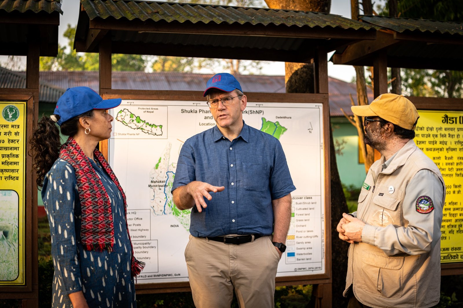 अमेरिकी राजदूत थम्पसन र यूएसएडका निर्देशक निर्देशक, सेपिडे केभन्शाडले, युएसएआईडी नेपालद्वारा कृष्णसार संरक्षणमा सहयोग पुर्याउन जैविक विविधता गतिविधिहरू अवलोकन गर्न शुक्लाफाँटा राष्ट्रिय निकुञ्जको भ्रमण गरेका छन् ।