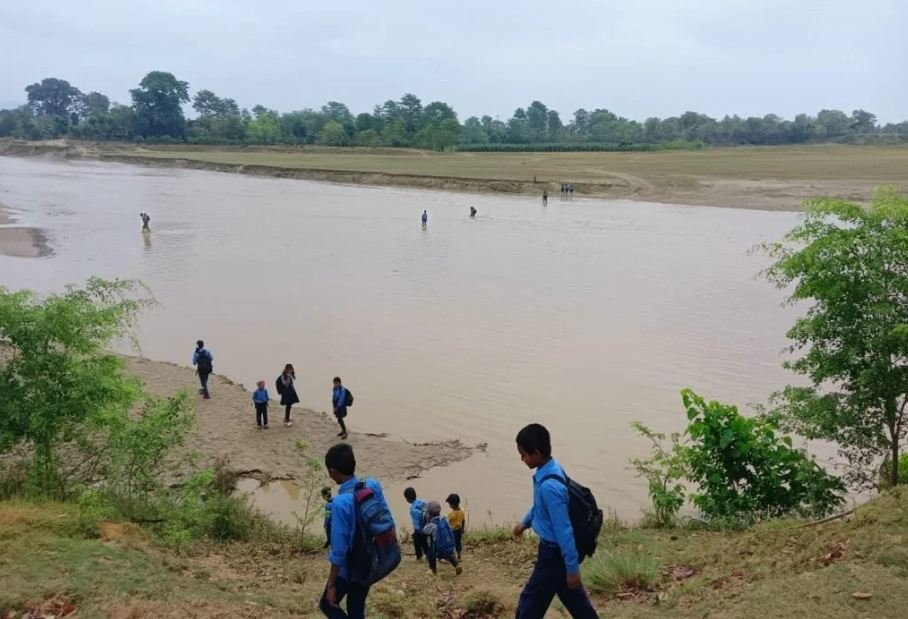 कपिलवस्तु । बिहानको साढे नौ बजेको छ । हातमा किताब कापी बोकेका विद्यार्थी हात ठाडो पारेर किताब टाउकोमा राखेर खोला तर्दै छन् । कोही खोला वारी नै खोला तर्न जुत्ता मोजा खोल्दै छन् । कोही पारी पुगेर जुत्ता मोजा लगाउँदै छन् । यो दृश्य हो कपिलवस्तुको विजयनगर गाउँपालिकामा रहेको चिरई खोला किनारको दृश्य हो ।
