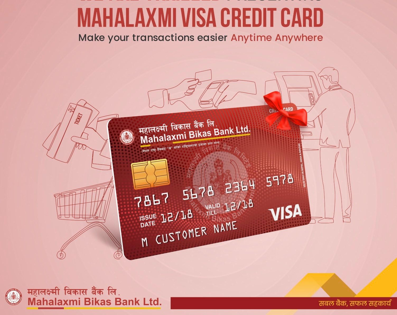 “सबल बैंक, सफल सहकार्य” को नारालाई आत्मसाथगर्दै नेपालीजनताको घरदैलोमाविगत २९वर्ष देखि अनवरत रुपले गुणस्तरिय वित्तीय सेवाप्रदानगर्दै आएको यस महालक्ष्मीविकास बैंक लिमिटेडले ग्राहकहरुको डिजिटल बैंकिङको आवश्यकता र चाहनालाई मध्यनजर गर्दै बैंकको २९औंवार्षिकोत्सवको अवसरमा VISA क्रेडिटकार्ड सेवाकोसुभारम्भ गरेको छ । बैंकले आजमिति २०८० जेष्ठ १२गतेशुक्रबारदेखिऔपचारिक रुपमाक्रेडिटकार्ड सेवाको सुभारम्भ गरेको हो ।