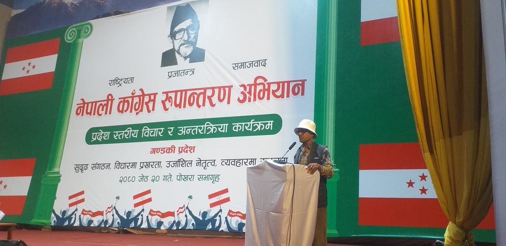पोखरा । काँग्रेसका नेता तथा कार्यकर्ताले शनिबार पोखराको सभागृह हल खचाखच थियो । गण्डकी प्रदेशभरिबाट काँग्रेस नेता तथा कार्यकर्ता पार्टीमा रुपान्तरण हुन पर्छ भन्ने चिन्ता मनभित्र बोकेर त्यहाँ पुगेका थिए ।