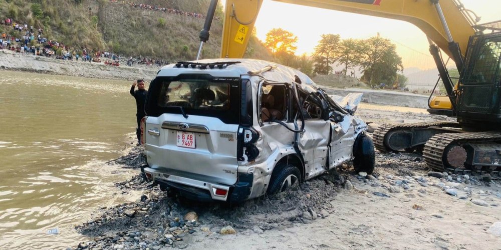 बा१झ ७४६७ नम्बरको गाडी शुक्रबार दिउँसो मध्यपहाडी लोकमार्गको खुर्कोट९घुर्मी खण्डअन्तर्गत गोलन्जोर गाउँपालिका९७ को लौकुनबाट सुनकोशी नदीमा खसेको थियो।