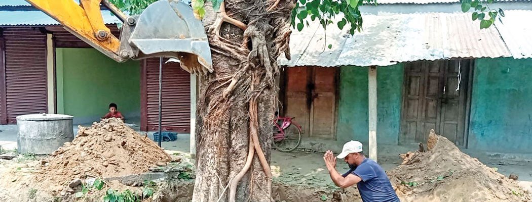 पश्चिम चितवनको पटिहानी, धनौजी चोकको पिपलको रुख अब स्मृतिमा सीमित भएको छ । स्थानीय अपिल घिमिरेको आँगन छोएर अडिएको पिपलको रुख ढल निर्माण गर्ने क्रममा एक्साभेटरले उखालिँदा घिमिरेको मन पीडाले भतभती पोल्यो ।