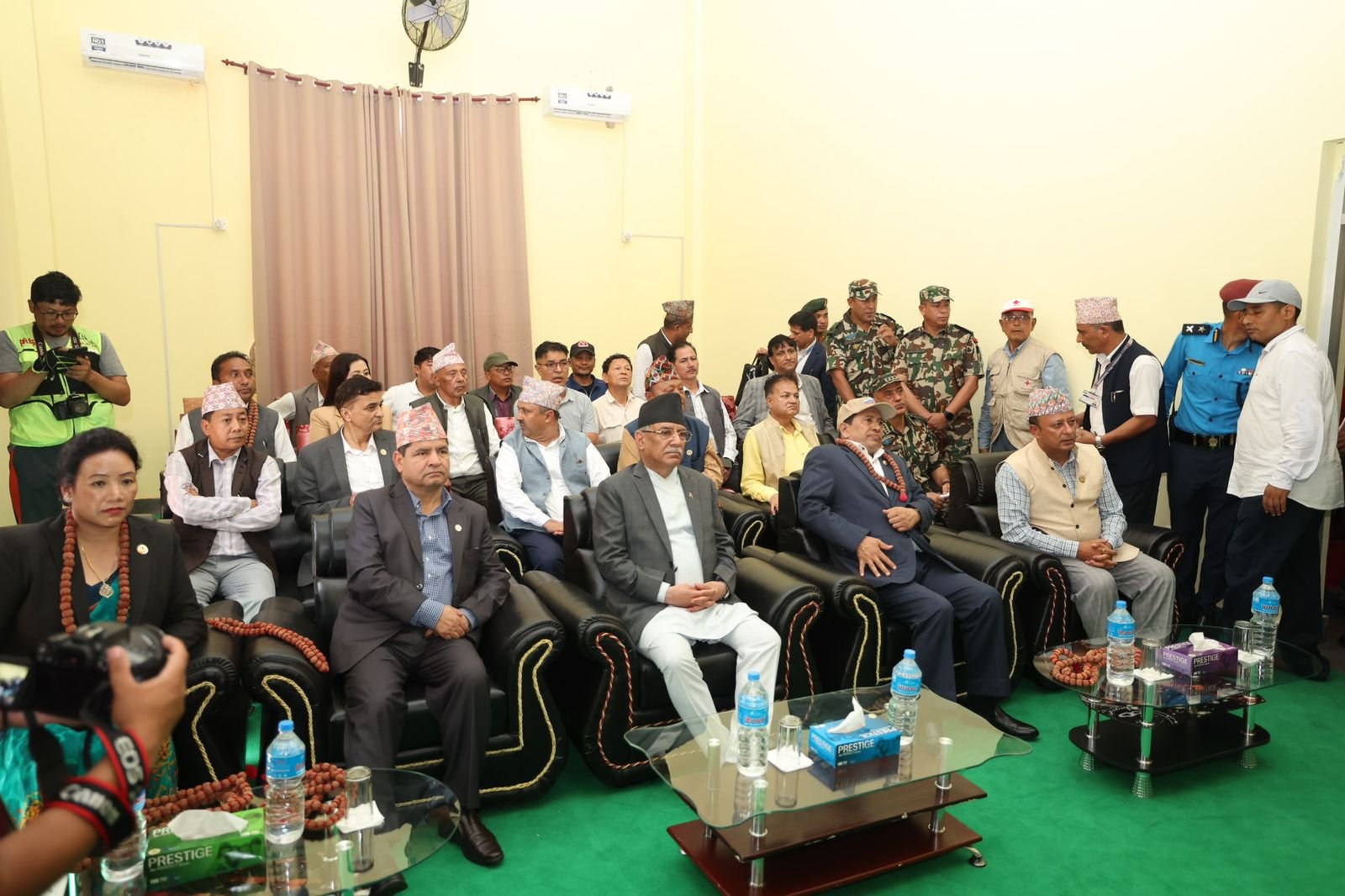 प्रधानमन्त्री दाहालको साथमा उपप्रधानमन्त्री तथा गृहमन्त्री नारायणकाजी श्रेष्ठ, भौतिक पूर्वाधार तथा यातायातमन्त्री प्रकाश ज्वाला, सहरी विकासमन्त्री सीता गुरुङ, सांसद योगेश भट्टराई, वसन्त नेम्वाङ, दिपक खड्का र कोशी प्रदेशसभा सदस्य राजेन्द्र कार्की हुनुहुन्छ । नेपाली सेनाका प्रधानसेनापति प्रभुराम शर्मा, गृह मन्त्रालयका विपत् हेर्ने प्राविधिक इञ्जिनियर र प्रधानमन्त्री कार्यालयका विपत् हेर्ने अधिकृत पनि उहाँका साथमा हुनुहुन्छ । प्रधानमन्त्री दाहालले आजै बाढीपहिरो प्रभावित ताप्लेजुङ र पाँचथरको अवस्थाबारे जानकारी लिनुहुनेछ ।