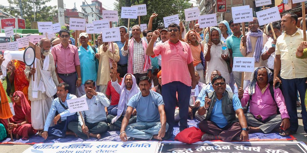 काठमाडौं । तराईका विभिन्न जिल्लाबाट आएका मिटरव्याजीहरू आज पनि माइतीघरमा धर्नामा बसेका छन् ।