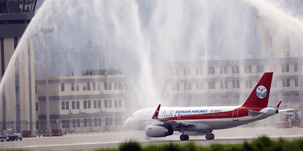 चीनको छेन्दुबाट आएको सिचुआन एयरलाइन्स आज विहान ९ः०६ बजे अवतरण हुँदा ‘वाटर क्यानन सल्युट’ले स्वागत गरियो । पहिलो अन्तर्राष्ट्रिय उडानका रुपमा ८४ जना यात्रु बोकेर आएको १३१ सिट क्षमताको चिनियाँ सिचुआन एयरलाइन्सलाई स्वागत गर्न पोखरेलीहरु बाजागाजासहित विमानस्थल पुगेका थिए । विमानका यात्रुहरुलाई पर्यटन व्यवसायीले माला र खादाले स्वागत गरे । उनीहरुलाई नेपाली ढाका टोपी लगाएर आतिथ्यता दर्शाए ।