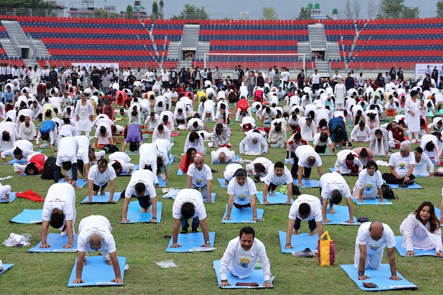 नवौँ अन्तर्राष्ट्रिय योग दिवसका अवसरमा भारतीय राजदूतावास, काठमाडौँले पोखरा महानगरपालिका, नेपाल पर्यटन बोर्ड र पतञ्जली योगपीठ नेपालसँगको सहकार्यमा पोखरा रङ्गशालामा एक सार्वजनिक योग कार्यक्रमको आयोजना गरिएको छ । यस वर्षको अन्तर्राष्ट्रिय योग दिवसको नारा ‘वसुधैव कुटुम्बकमका लागि योग’ अर्थात् “एक विश्व एक परिवार सबैको कल्याणका लागि योग” रहेको छ । कार्यक्रममा संस्कृति, पर्यटन तथा नागरिक उड्डयनमन्त्री सुदन किराती, गण्डकी प्रदेशका मुख्यमन्त्री सुरेन्द्रराज पाण्डे, पोखरा महानगरपालिकाका मेयर धनराज आचार्य र सो क्षेत्रका दुई हजारभन्दा बढी योग पारखीको सो कार्यक्रममा उपस्थिति थियो ।