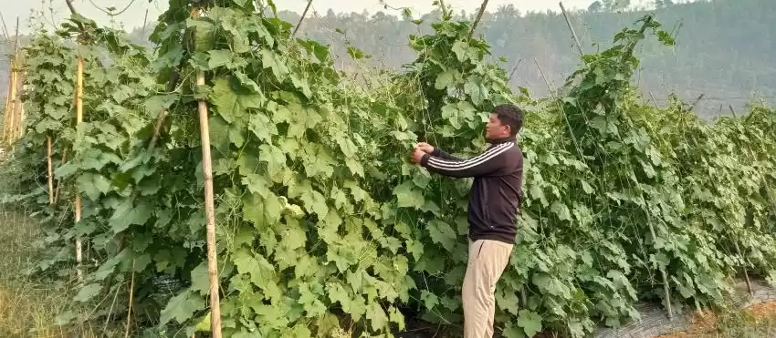 उनले करिब दस रोपनी भाडामाको जमिनमा तरकारी लगाउँदै आएका छन् ।“जग्गा भाडामा लिएर व्यावसायिक खेती गर्नेलाई स्थानीय जातको बीउ लगाएर हुदैन, स्थानीय जातमा धेरै रोगकीराले सताउने गर्दछ, बजारमा आएका नयाँ जातका बीउ बेला बेलामा खरिद गरेर तरकारी खेती गरिरहेको छु, उत्पादन राम्रै दिइरहेको छ” उनि भन्छन् ।