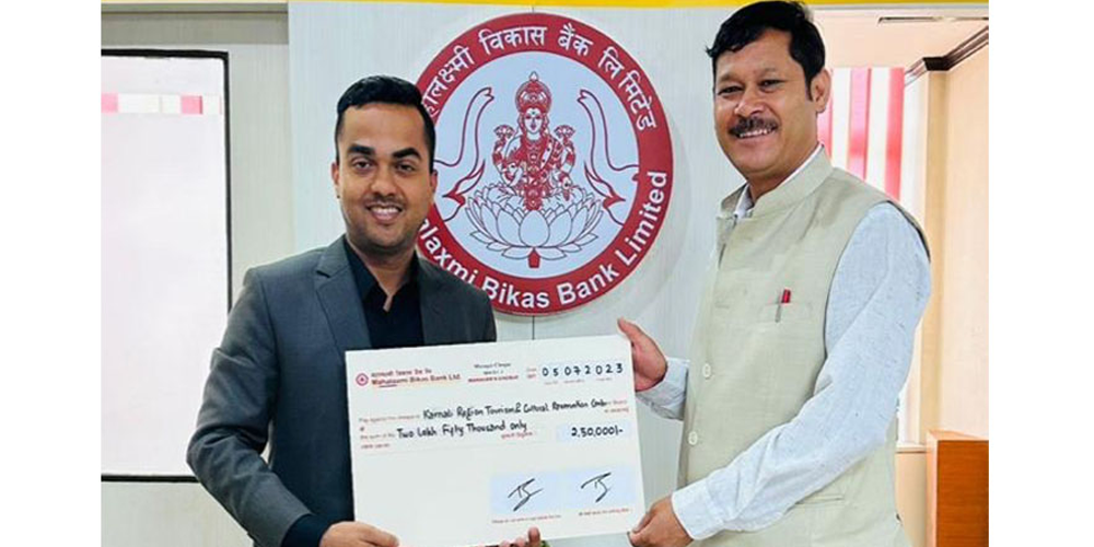 बैंकका निक्षेप बजारिकरण तथा संस्थागत सम्पर्क विभागका प्रमुख बसन्त बक्सीले कर्णली प्रदेश पर्यटकीय तथा साँस्कृतिक संरक्षण केन्द्रका अध्यक्ष टेकराज शाहीलाई दुई लाख पचास हजार बराबरको चेक हस्तान्तरण गरेका हुन् ।