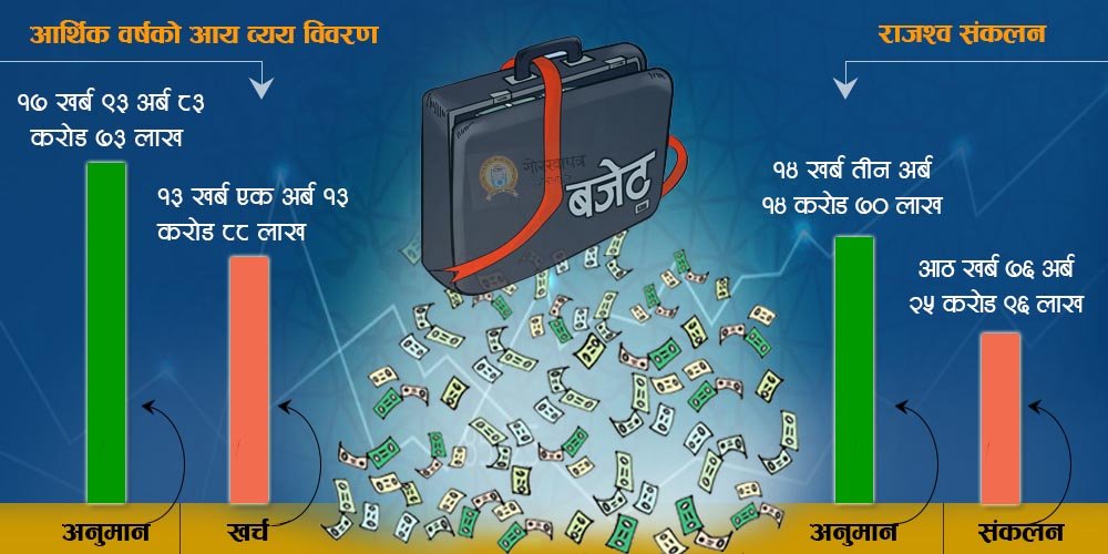सरकारले चालु आर्थिक वर्षमा १७ खर्ब ९३ अर्ब ८३ करोड ७३ लाख खर्च गर्ने अनुमान गरेको थियो। अहिलेसम्म ७२.५३ प्रतिशत अर्थात् १३ खर्ब एक अर्ब १३ करोड ८८ लाख रुपियाँ खर्च भएको छ।
