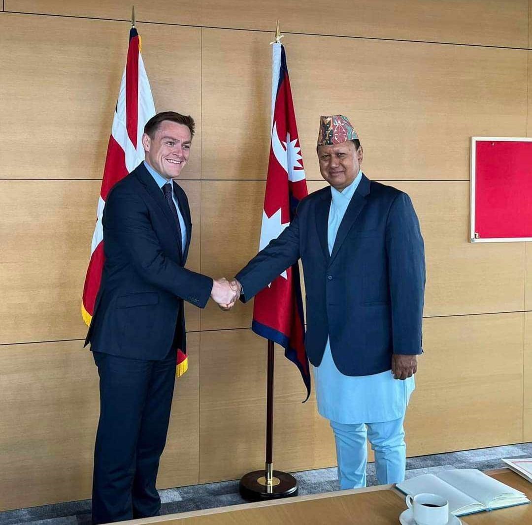 स्वास्थ्य तथा जनसङ्ख्यामन्त्री मोहनबहादुर बस्नेत र संयुक्त अधिराज्यका स्वास्थ्य राज्यमन्त्री विल क्वीन्ससँग संयुक्त अधिराज्यको स्वास्थ्य मन्त्रालयमा भेटवार्ता भएको छ । सोमबार भएको भेटमा स्वास्थ्य मन्त्री बस्नेतले बेलायत सरकारले नेपालको आर्थिक र सामाजिक विकास विशेषगरी स्वास्थ्य क्षेत्रमा पुर्याएको सहयोगको प्रशंसा गर्दै आगामी दिनमा यसमा थप अभिवृद्धि हुने विश्वास व्यक्त गर्नुभएको नेपाली दूतावास लन्डनले जनाएको छ ।
