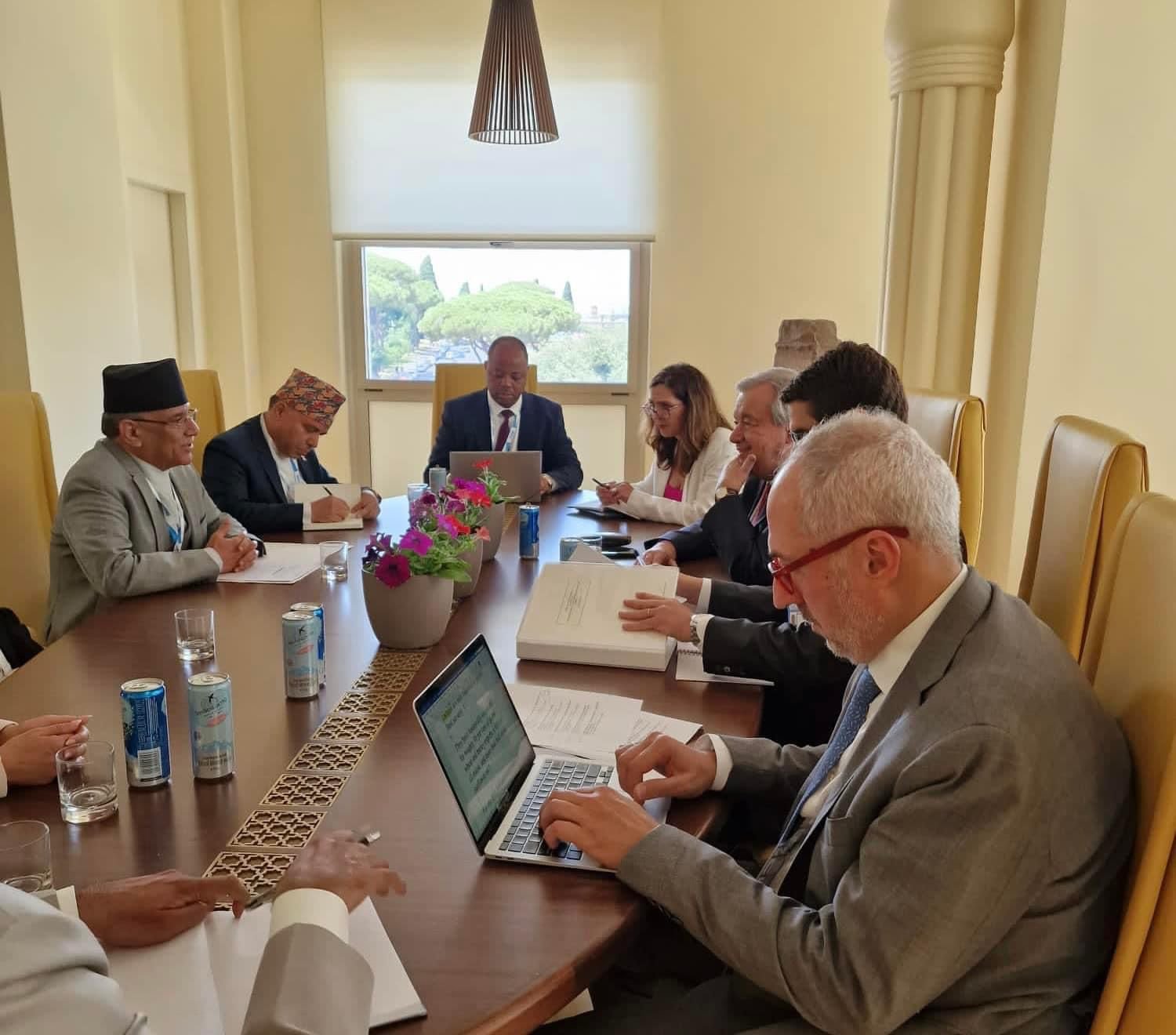 प्रधानमन्त्री पुष्पकमल दाहाल ‘प्रचण्ड’ र संयुक्त राष्ट्रसङ्घका महासचिव एन्टोनियो गुटेरसबीच भेटवार्ता भएको छ । संयुक्त राष्ट्रसङ्घीय खाद्य तथा कृषि सङ्गठनको मुख्यालय इटालीको रोममा जारी संयुक्त राष्ट्रसङ्घीय खाद्य प्रणाली २०२३ सम्मेलनका क्रममा उहाँहरूबीच भेटवार्ता भएको हो ।