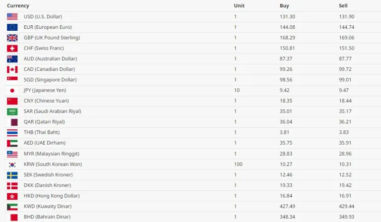 अमेरिकी डलर एकको खरिद दर १३१ रुपैयाँ ३० पैसा र बिक्री दर १३१ रुपैयाँ ९० पैसा पुगेको छ।