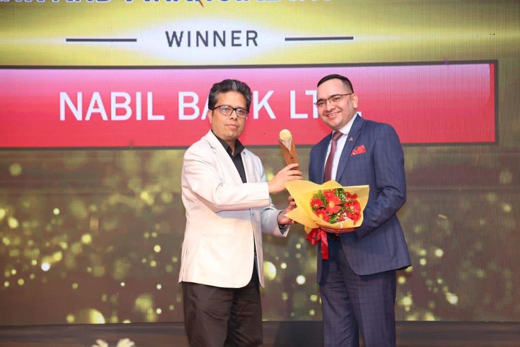 नेपाल बैंकर्स संघका अध्यक्ष सुनिल केसीले नबिल बैंकका नायब प्रमुख कार्यकारी अधिकृत मनोज ज्ञवालीलाई अवार्ड हस्तान्तरण गरेका थिए।