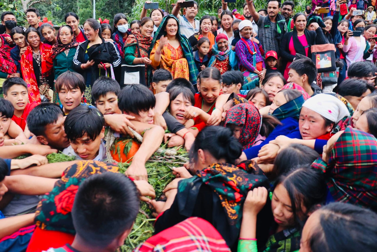 बारीको पल्लो छेउ मौलिक वेषभूषामा सजिएर सिस्नो खोस्न य्वती तम्तयार हुन्छन् । हातमा सिस्नो समातेका युवक युवतीको छेउछाउ पुग्छन्, सिस्नोले हातमा छोइदिन्छन्, जिस्किन्छन् । युवतीहरू पनि के कम, केटा पक्षले सिस्नोमा बाँधेर ल्याएको सुँगुरको साँप्रो खोस्न होमिन्छन्, अनि सुरु हुन्छ तानातान र खोसाखोस ।