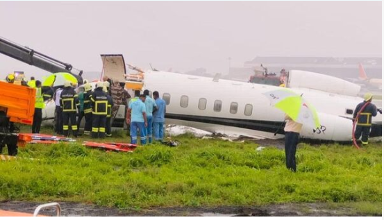 विमानस्थलले जारी गरेको छोटो विज्ञप्तिमा भनिएको छ, “विशाखपटनमबाट मुम्बईका लागि उडान भरेको भीटी–डीबीएल लियरजेट ४५ विमान स्थानीय समयअनुसार साँझ ६ः४७ बजे धावनमार्गमा चिप्लिएर दुर्घटनाग्रस्त भएको थियो ।”