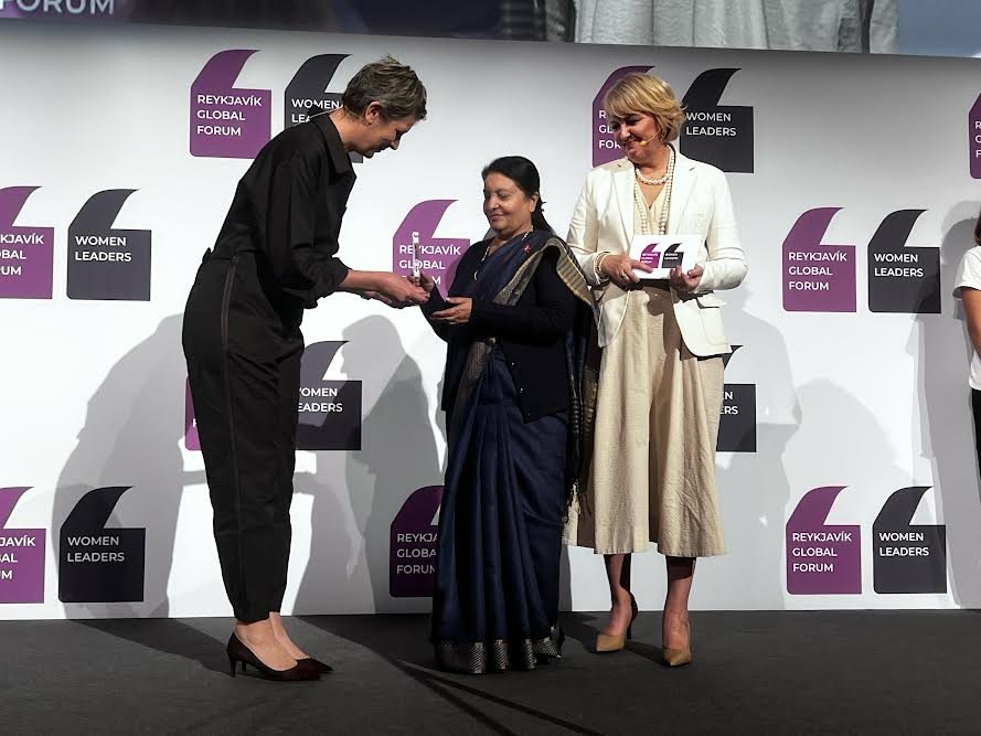 आइल्याण्डमा राष्ट्रपति भण्डारीलाई ‘डब्ल्युपीएल ट्रेलब्लेजर अवार्ड’ प्रदान