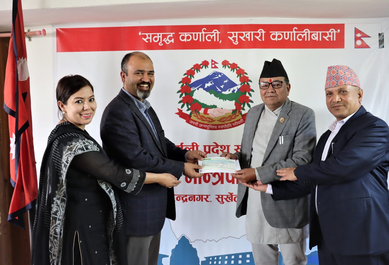एनसेलले बिहीवार आफ्नो प्रतिबद्घताअनुरुपकर्णालीप्रदेश सरकारको मुख्यमन्त्रितथामन्त्रिपरिषदकार्यलय, सुर्खेत पुगेर रु ५० लाखको चेक हस्तान्तरण गरेको छ । चेकएनसेलकातर्फबाट एनसेलकाचिफ रेगुलेटरी एण्ड लिगलअफिसर, विशालउपाध्यायले कर्णालीप्रदेश सरकारको उद्योग, वनतथा पर्यटन मन्त्रि कृष्ण बहादुर बिसीलाई एक कार्यक्रममाझ हस्तान्तरण गरेका थिए।