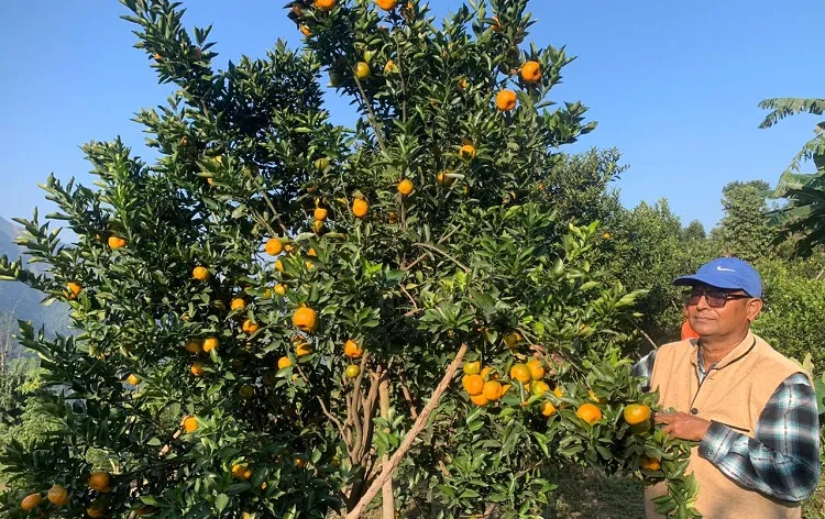 ‘सुरुमा १० सुन्तला र चार सय कागतीबाट फलफूल खेती सुरु गरेँ’, उनले भने, ‘विसं २०७६ बाट सुन्तला थप्न सुरु गरिएको हो, अहिले डाँडाभरि सुन्तला छन् ।’