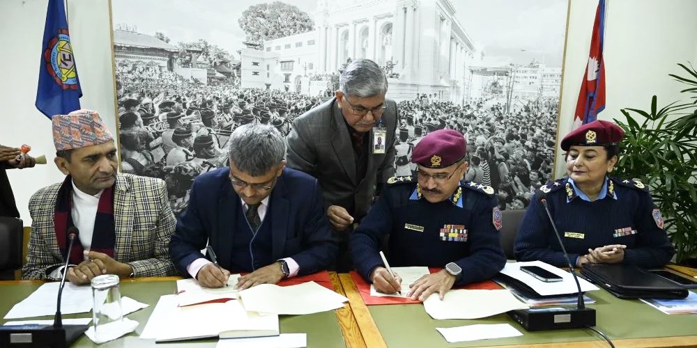 काठमाडौं । चिकित्सा शिक्षा र अनुसन्धानको क्षेत्रमा सहकार्य गर्न नेपाल प्रहरी अस्पताल र काठमाडौं विश्वविद्यालयबीच सम्झौतापत्रमा हस्ताक्षर भएको छ ।